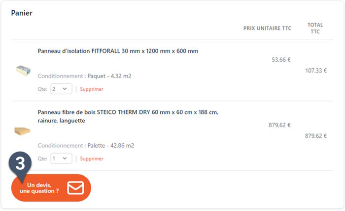 Cliquez sur le bouton "Un devis, une question ?" pour ouvir le formulaire de demande