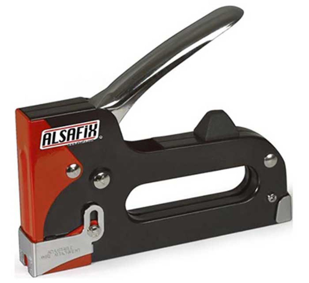 Agrafeuse manuelle, pour agrafage conventionnel. Agrafage de câble grâce à la butée réglable en hauteur.