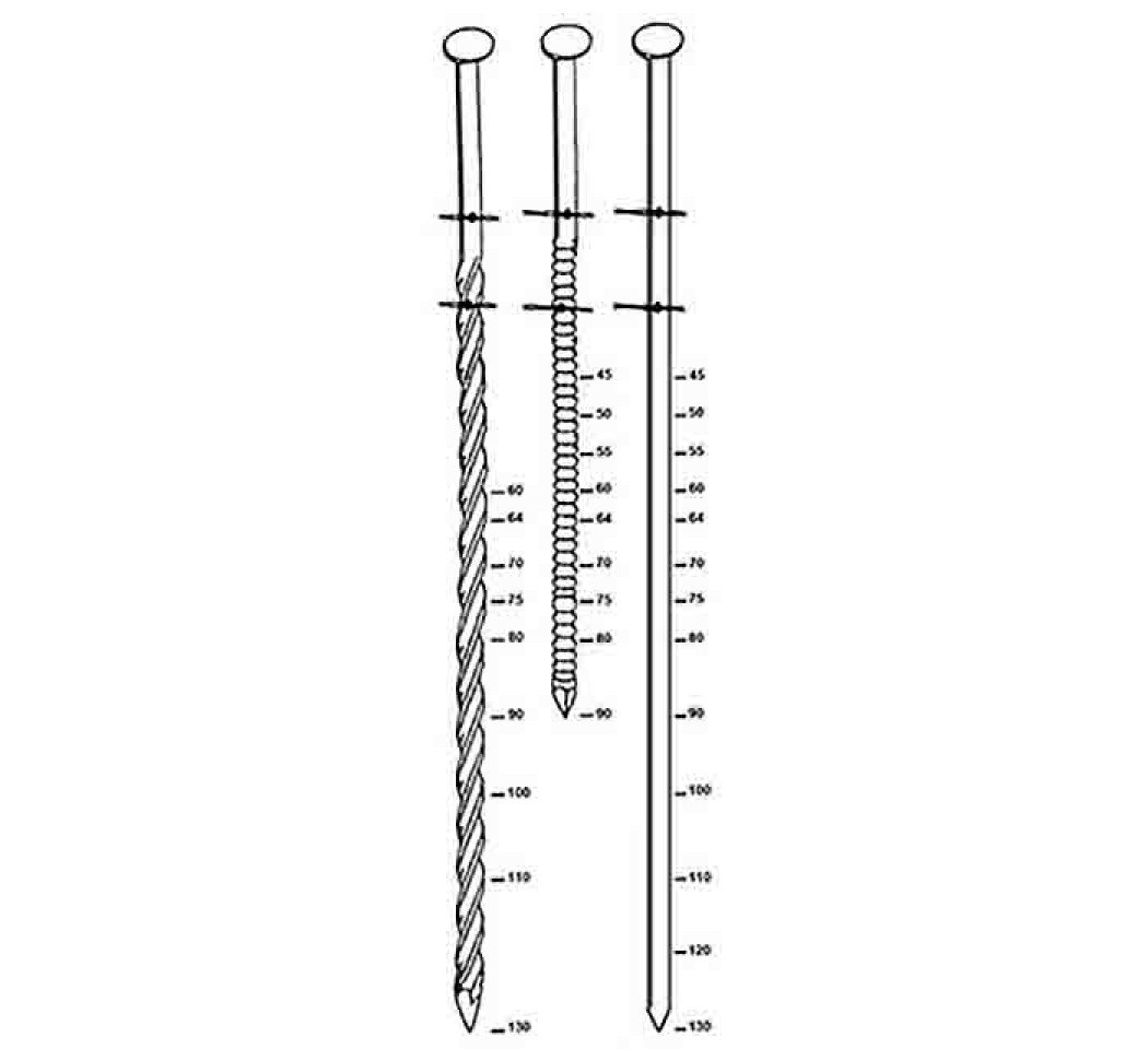 Pointes annelées galvanisées, en rouleaux 16° (reliées par fil métallique), pour cloueur pneumatique. Rouleau de 4500 à 10800 pointes selon dimension des pointes.