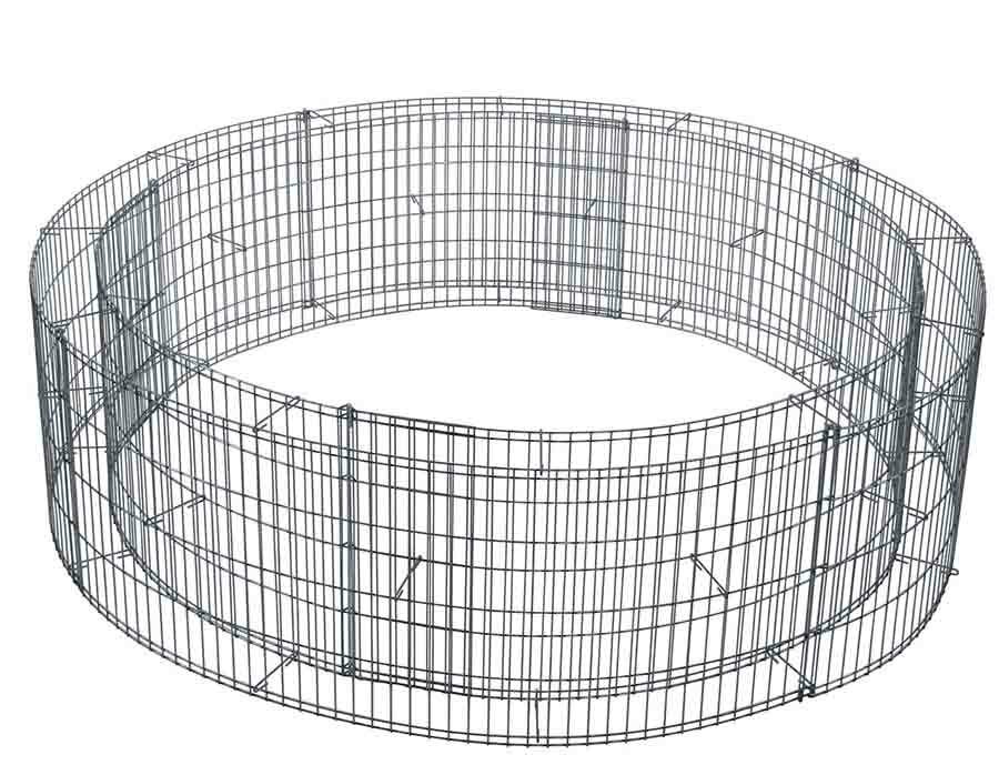Gabions circulaire faisant office de bac à plante. idéal pour décorer votre pelouse, votre terrasse ou planter des herbes aromatiques. Ils assureront une hauteur de travail confortable qui ménagera votre dos!