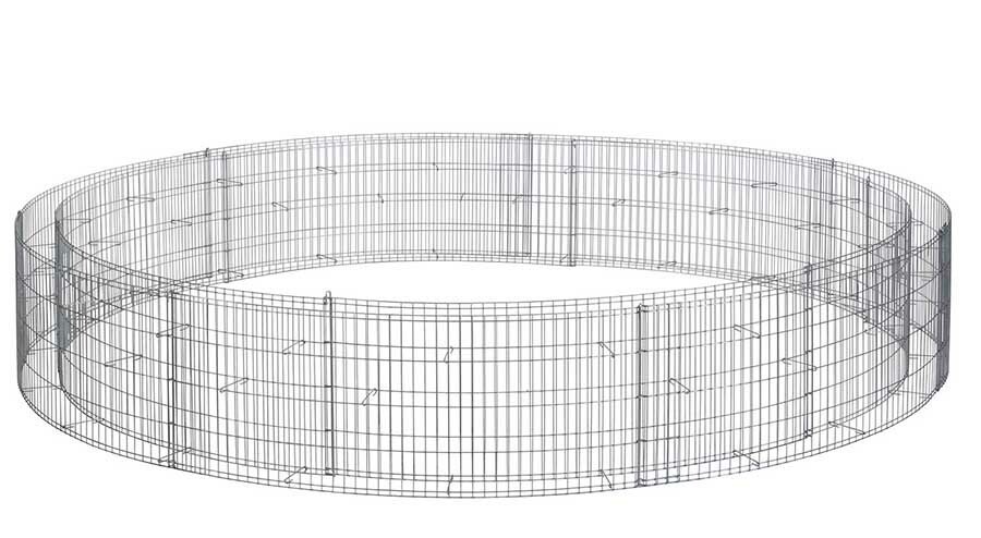 Gabions circulaire faisant office de bac à plante. idéal pour décorer votre pelouse, votre terrasse ou planter des herbes aromatiques. Ils assureront une hauteur de travail confortable qui ménagera votre dos!
