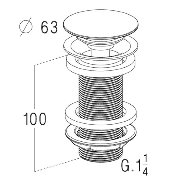 Bonde de vidage libre en laiton chromé brillant. 1’1/4 x H 100 Convient aux vasques sans trop-plein