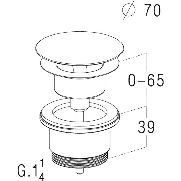 Bonde de vidage libre chromé brillant, hauteur 39/104