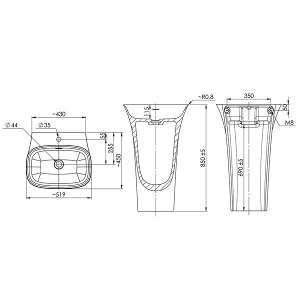 Vasque sur pied Design en gelcoat mat ou durocoat brillant. Ces matériaux sont réservés au produits haut de gamme. Ils assureront une durabilité à toute épreuve. Pour pitigeur mural. Possibilité de perçage avec une scie cloche diamant. Ces vasques sont garanties 10 ans! Elles se marieront à la perfection avec les baignoires et les vasques à poser.