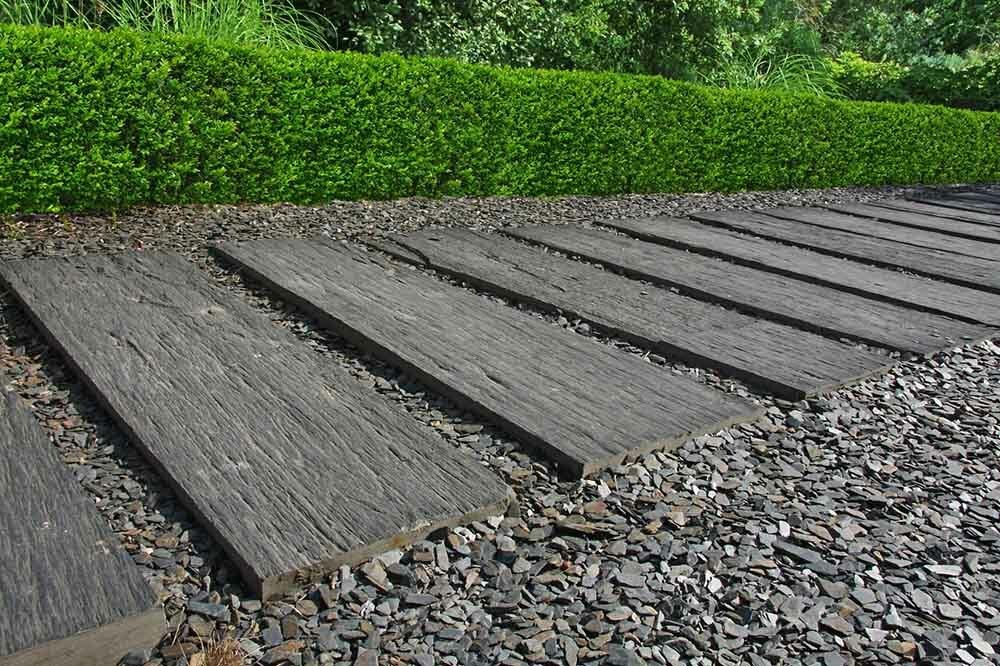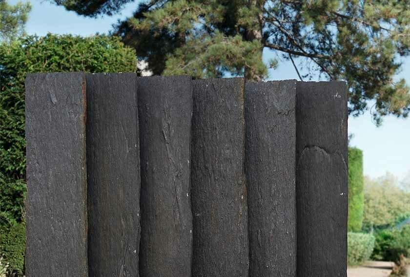 Les dalles brise-vue en schiste : élégance et opacité pour votre jardin. Les dalles de schiste, avec leur teinte sombre, confèrent une atmosphère noble à votre espace extérieur. Les palissades en schiste sont un excellent moyen de délimiter visuellement des zones ou de créer des clôtures dans votre jardin. Elles pourront également servir de pas japonais ou servir à la réalisation d'allées.