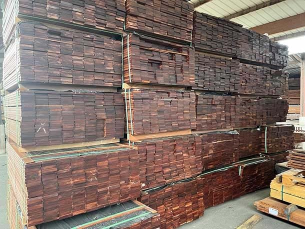 Lames de terrasse en bois exotique, 2 faces lisses, section 20 mm x 105 mm, stock limité...