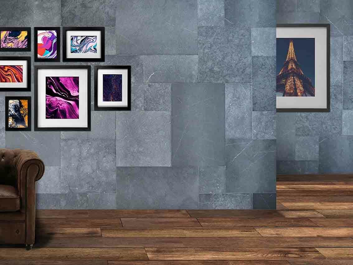Dalles en marbre NOBILY DARKNESS, bords sciés, surface sablée brossée, opus 4 formats , épaisseur 1,2 cm
