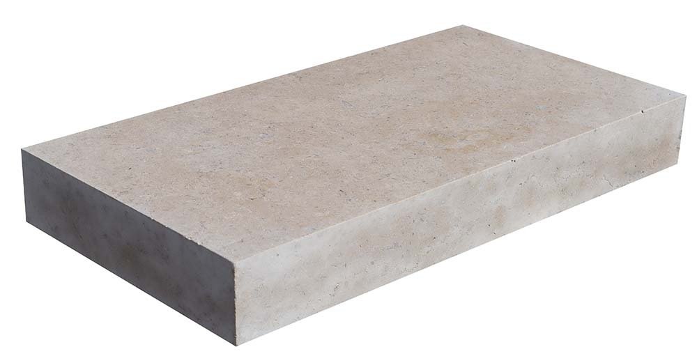 Margelle de piscine ISIS en pierre d'Egypte, surface sablée brossée, bord droit chanfreiné, 33 cm x 60 cm x 8 cm