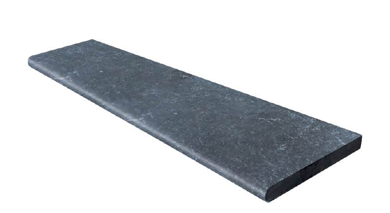 Margelle de piscine ou couvertine en marbre noir BLACK PANTHER, 1 bord demi-rond, surface vieillie, 33 cm x 100 cm x 3,2 cm