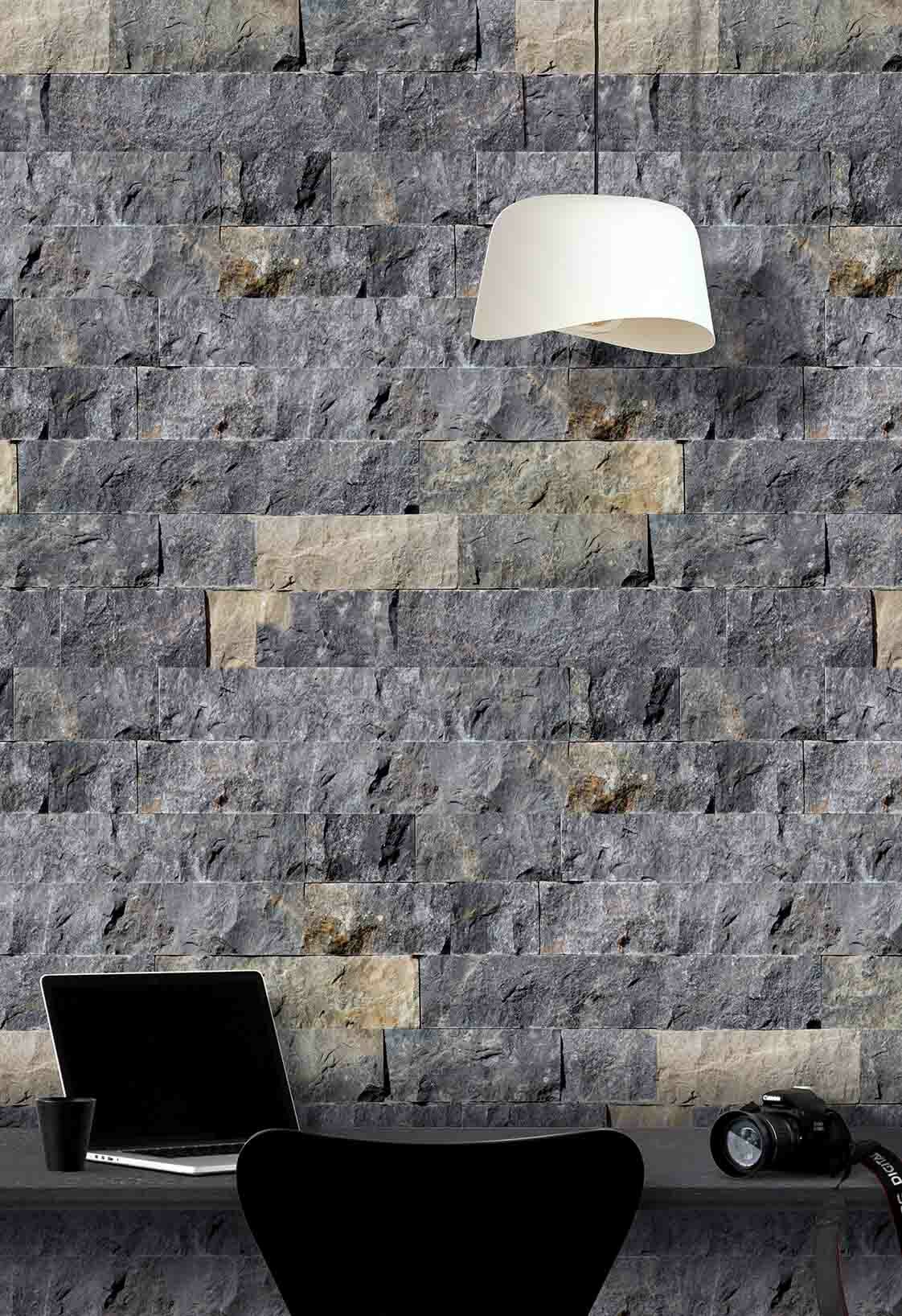 Parement mural en pierre naturelle, constitué de plaquettes massives de hauteur panachée de 5, 7,5 et 10 cm. Les longueurs sont variables pour encore plus d'authenticité.