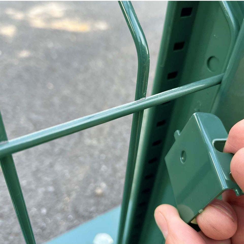 Clips de fixation pour panneau grillage rigide sur poteaux à clips. Ces clips permettent une fixation robuste, discrète et efficace de vos panneaux sur les poteaux à clips. Pose grandement facilitée à l'aide de la pince à clips. Existe en gris ou vert. Disponible dans d'autres coloris, sur demande.