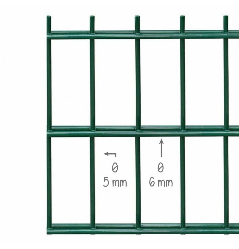 Kit grillage rigide 22.5 ml, à sceller double fil de 6/5/6 mm, hauteur 1.83 m, vert