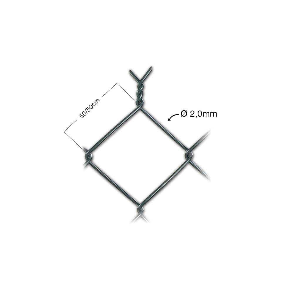 Grillage à maille losange simple torsion  constitué de fils galvanisés offrant une grande durée de vie. Ce grillage est le plus commun pour clôturer les grands espaces, mêmes accidentés, dans le but de sécuriser et délimiter son terrain.