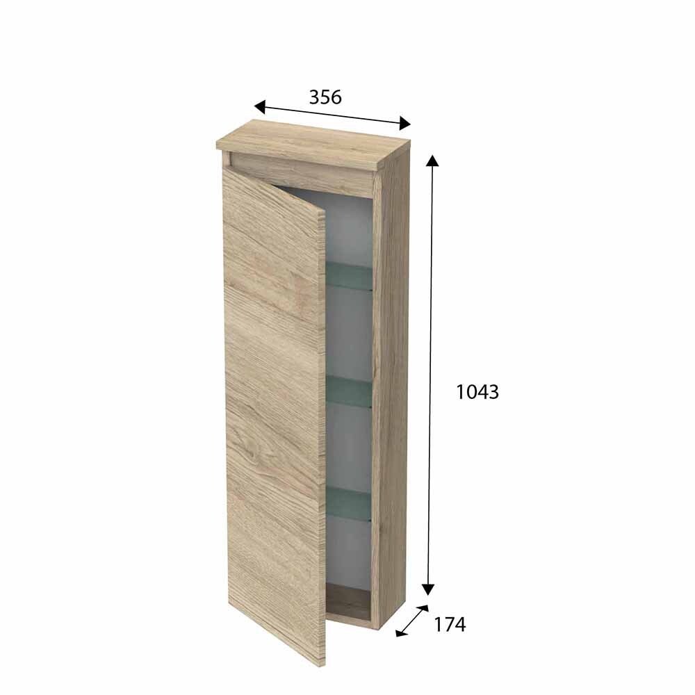 Colonne 1 porte, avec 3 étagères en verre. Système d'ouverture par poussé/lâché. Charnières à droite ou à gauche (à choisir lors de la commande).