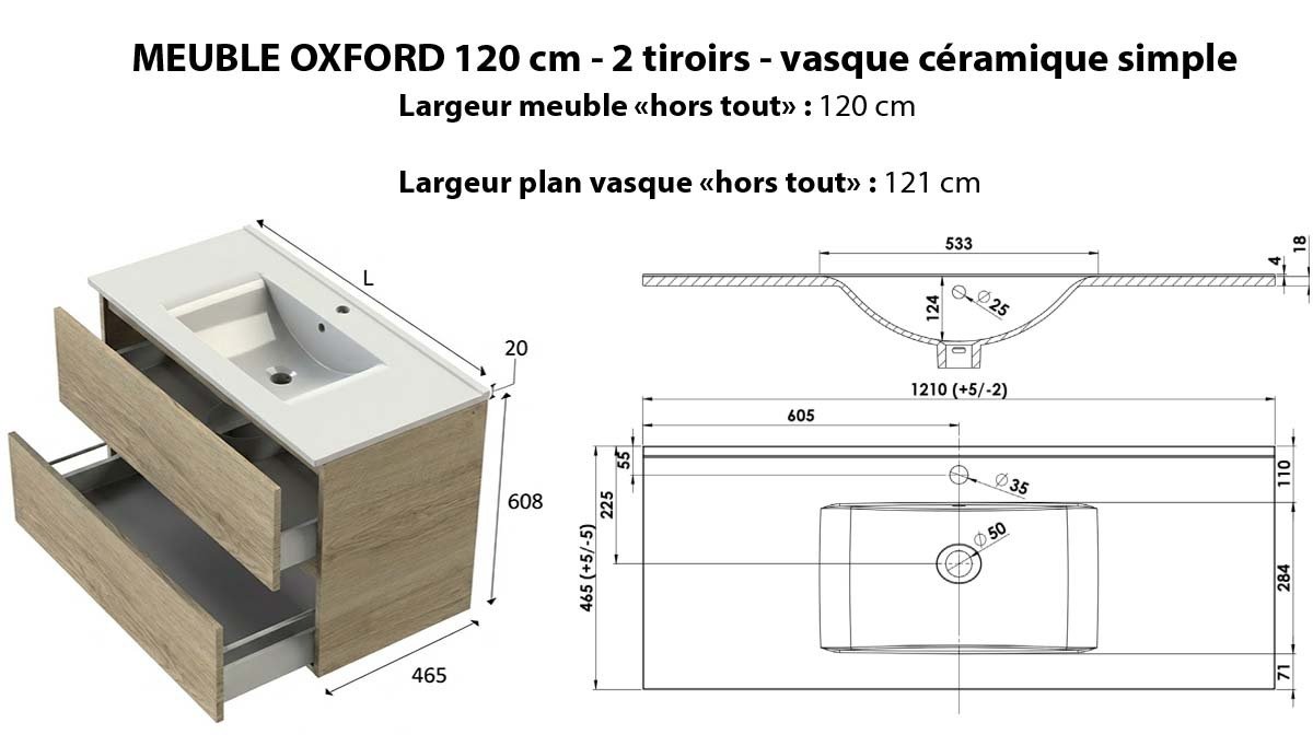 Ensemble meuble de salle de bain Oxford 120 cm grège brillant, plan vasque céramique, 2 tiroirs , miroir rond , colonne P. 35 cm x H. 153 cm