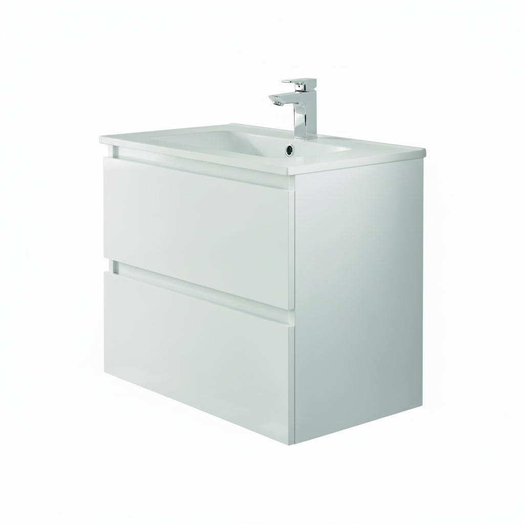 • Ensemble meuble de salle de bain Oxford 80 cm blanc brillant, plan vasque marbre reconstitué, 2 tiroirs