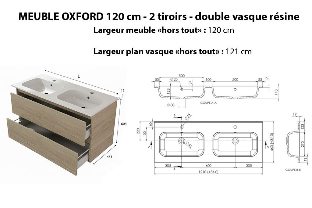 -Meubles livrés montés, assemblage tourillonné/collé, suspendu par boitiers d'accrochage anti-décrochement réglable, et avec vide sanitaire.