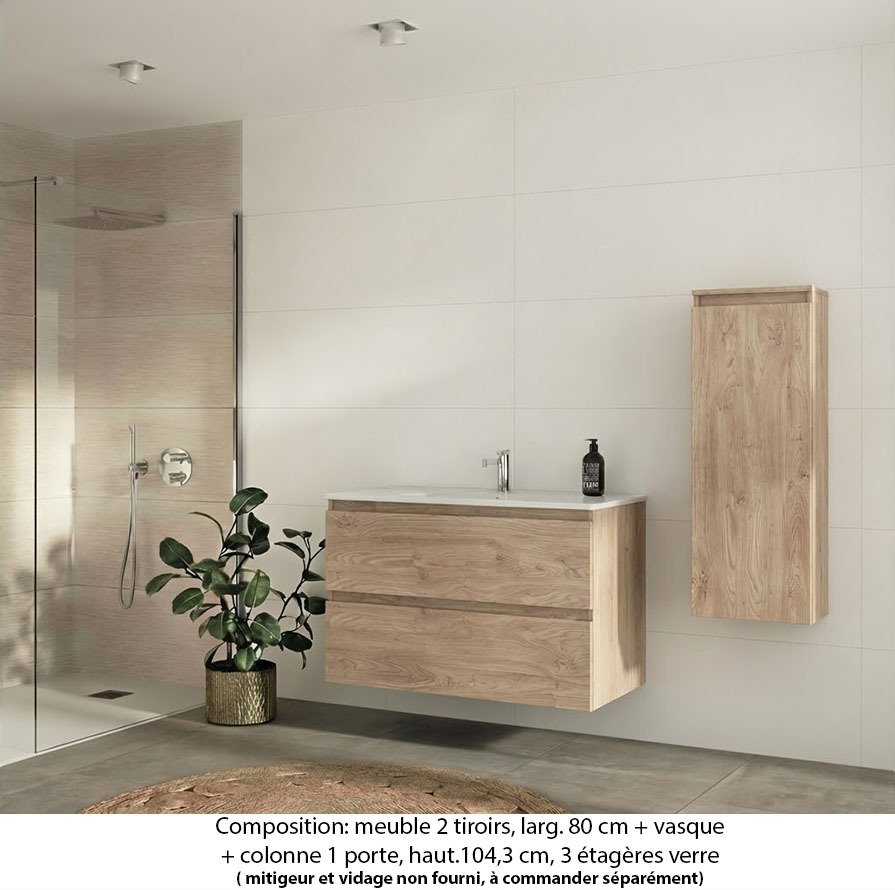 - Vasques en céramique blanc brillant ou marbre reconstitué (au choix), composé de polyester et de carbonate de calcium avec un revêtement en surface Gel Coat de type ISO. (pas de vasque acrylique bas de gamme)