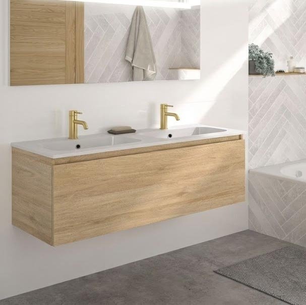 Ensemble mitigeur TIME bec incliné, gold avec vidage clic-clac gold
