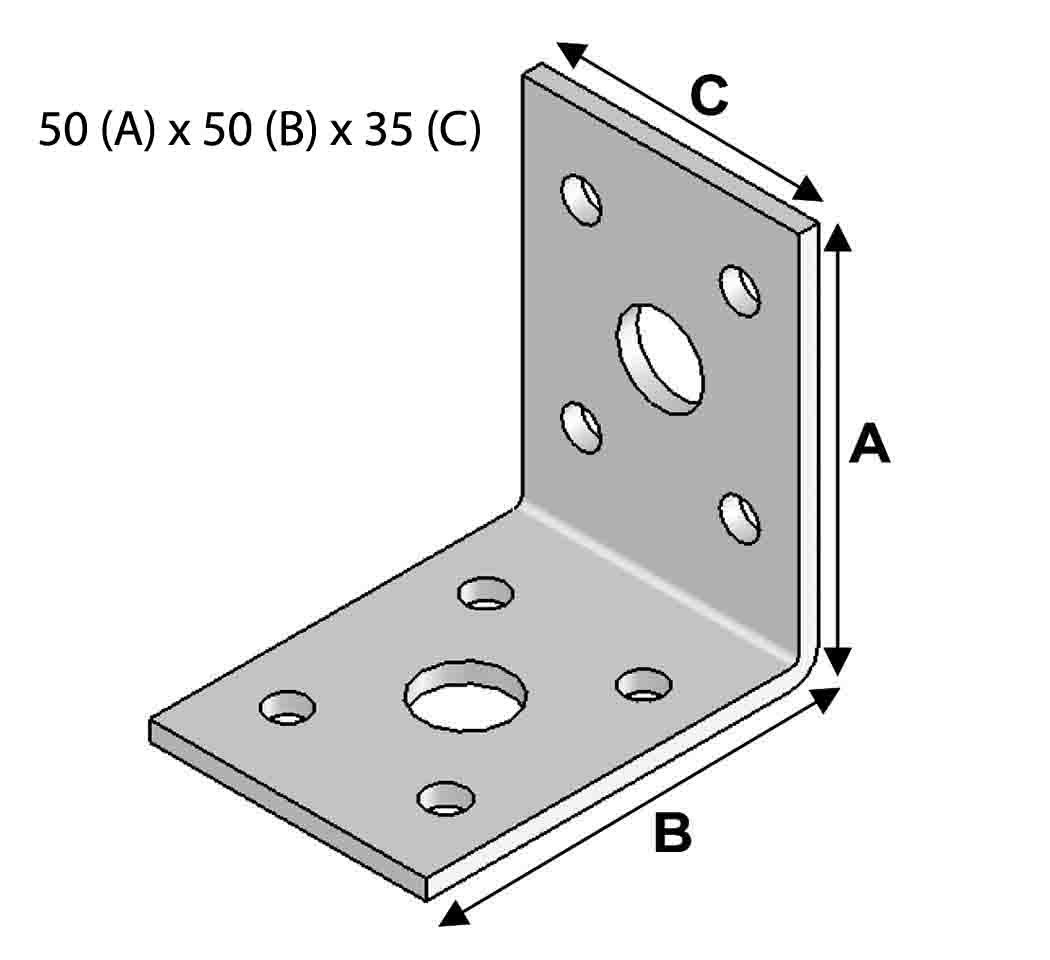 Equerre de fixation pour pièces de bois et de charpente. Permet l'assemblage durable et resistants de pièces de bois ou de charpentes.