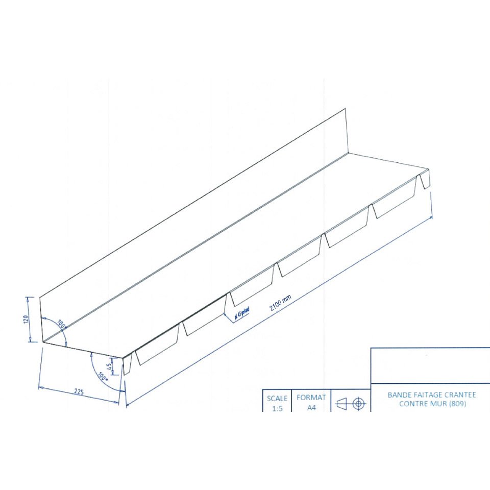 Faîtière contre mur en acier galvanisé laqué, pour bac acier. Permet de réaliser l'étanchéité des plaques de bac acier dont le sommet est contre un mur.