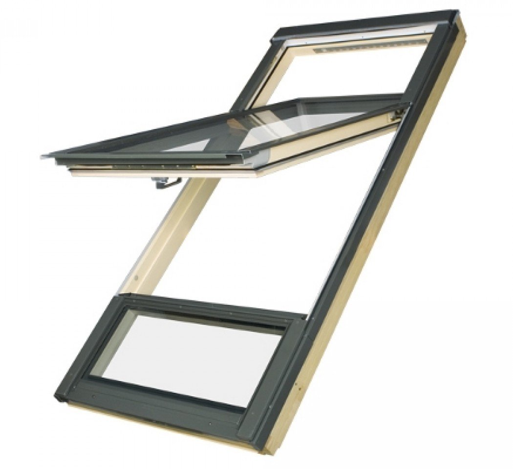 Fenêtre à rotation rehaussée avec allège fixe Duet prosky, double vitrage U3 - 94 cm x 255 cm