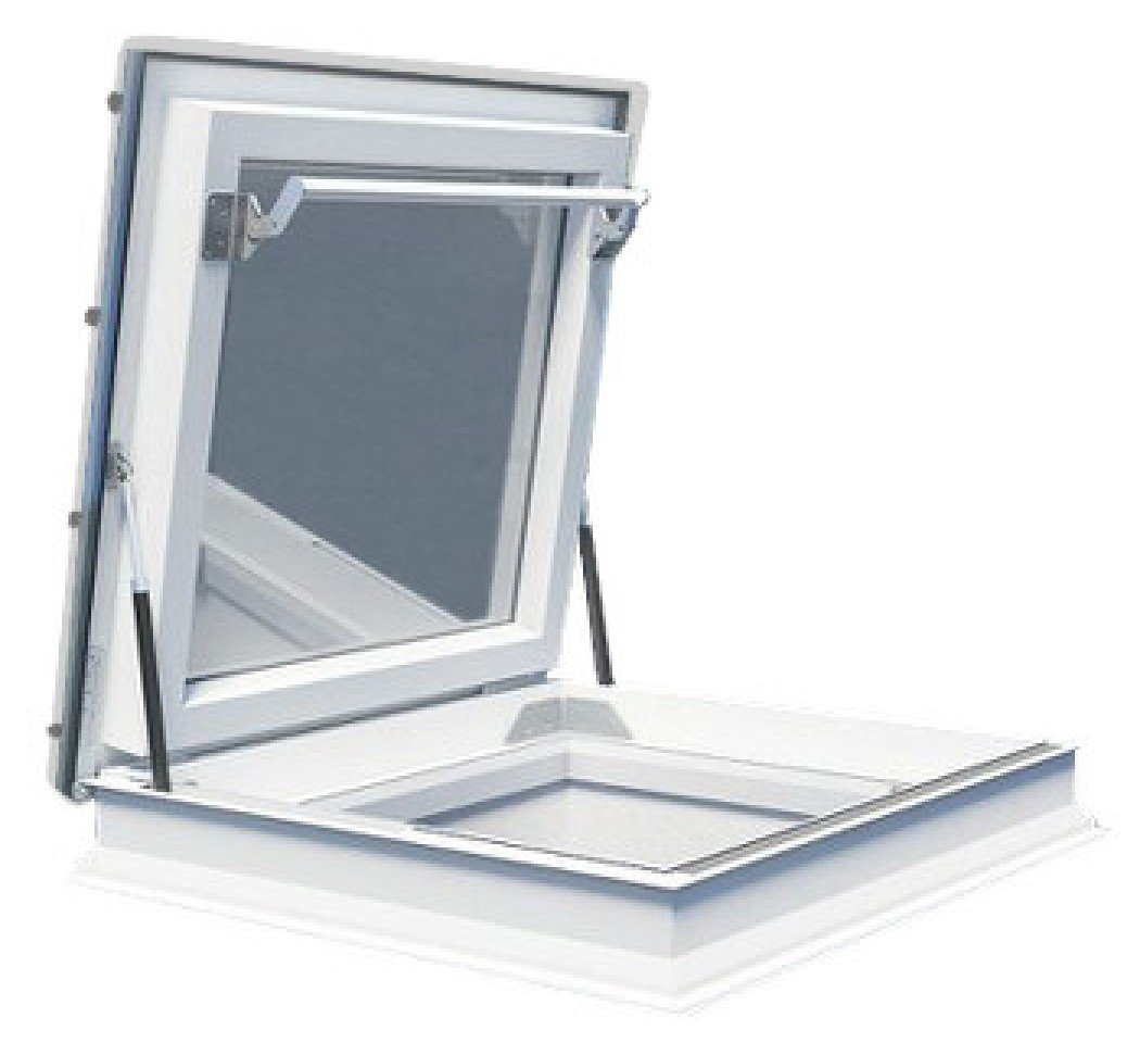 - Les cadres dormants (15 cm) et ouvrants sont composés par des profilés en PVC à chambres multiples qui sont remplies d’isolation et blanc du coté intérieur. - L’ouvrant s’ouvre jusqu’un angle de 80°. Les vérins à gaz incorporés assurent une ouverture et une fermeture confortable, ainsi qu’une immobilisation de l’ouvrant en position complètement ouverte. - Une surface antidérapante sur le cadre dormant assure un accès sécurisé sur le toit plat. - Pose admise dans des pentes de toitures de 0 à 15°. - La version de fenêtre à verre plan doit impérativement être posée dans un angle de pose de min. 2° à max. 15°.
