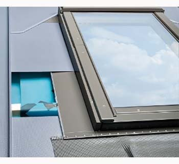 EBV-P raccordement permet le montage étanche de la fenêtre dans un toit à couverture en acier galvanisé laqué.