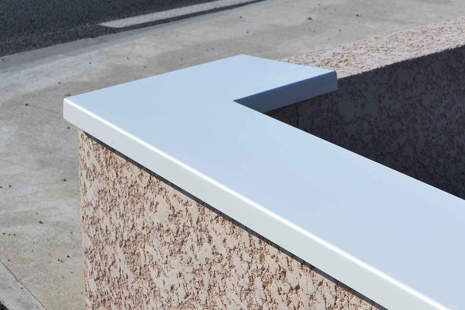 Contrairement à un chapeau de mur en béton traditionnel, les couvre-mur aluminium peuvent se poser par tous les temps, car il n’y a pas de contraintes de températures et il n’y pas de besoin d’encollage.