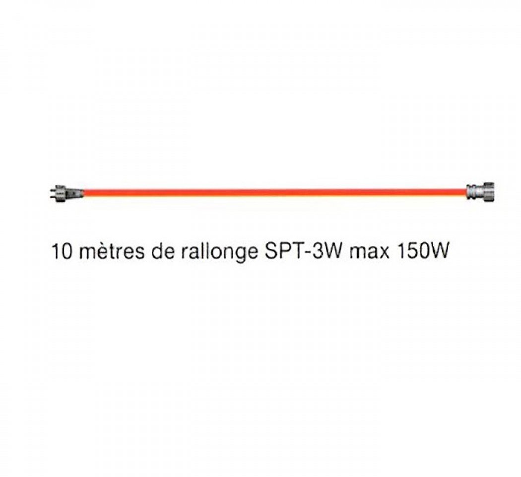 Ce câble de rallonge SPT-3 d'une longueur de 10 mètres permet de raccorder vos lampes, même sur une grande distance, sur le transformateur vers le câble principal. Le câble a une capacité maximale de 150 watts. Le câble de rallonge ne possède malheureusement de points pour raccorder vos lampes.