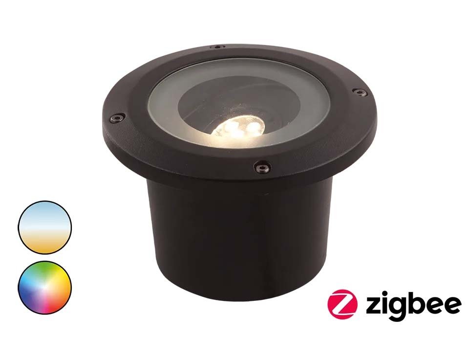 Il suffit d'installer ce spot dans le sol avec le tube fourni, de régler l'angle de la lumière avec la source lumineuse intelligente flexible et de connecter le spot à l'appli Smart Life.