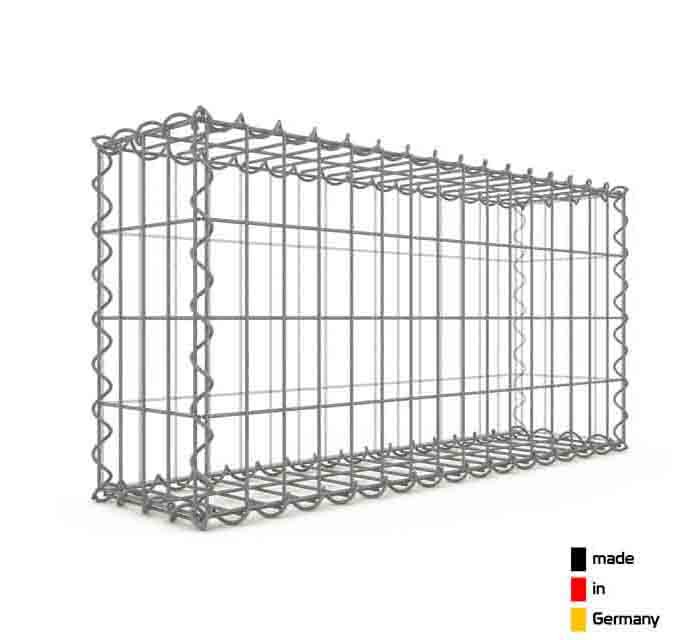 Kit Gabion 6 faces en mailles rectangulaires 5 x 5 cm fabriqué en Allemagne. Fils d'acier recouvert de Galfan (Alliage 90% Zinc &10% Aluminium) pour une résistance à la corrosion 6 fois supérieure à une galvanisation standard.