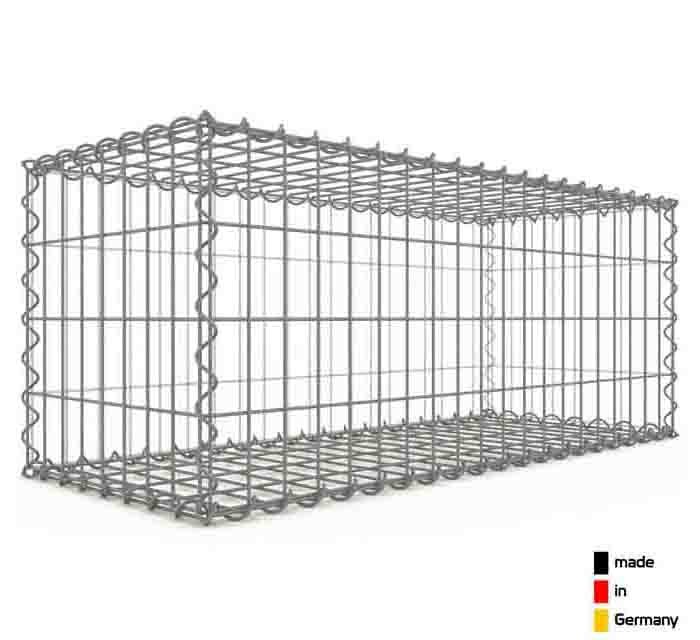 Kit Gabion 6 faces en mailles rectangulaires 10 x 10 cm fabriqué en Allemagne. Fils d'acier recouvert de Galfan (Alliage 90% Zinc &10% Aluminium) pour une résistance à la corrosion 6 fois supérieure à une galvanisation standard.