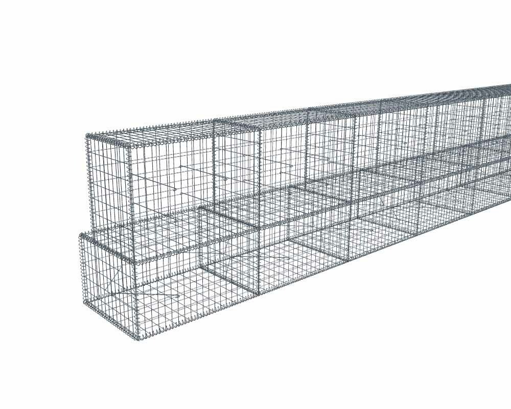 Gabions de qualité professionnelle, pour soutènement de plat sans surcharge. Hauteur 120 cm, longueur 28 m