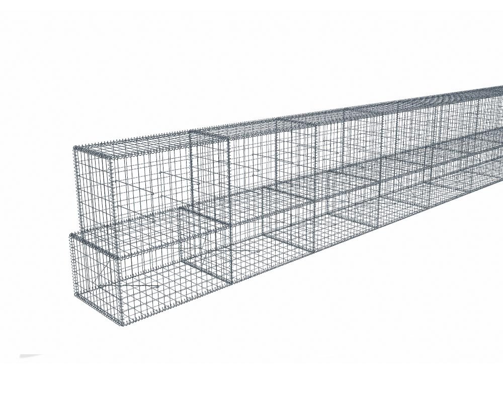 Ces gabions sont des modules de 2 ml, composés de panneaux de 2 m de long. Pour les kits de moins de 6 m de longueur, les côtés sont composés de panneaux de 1 m de longueur.