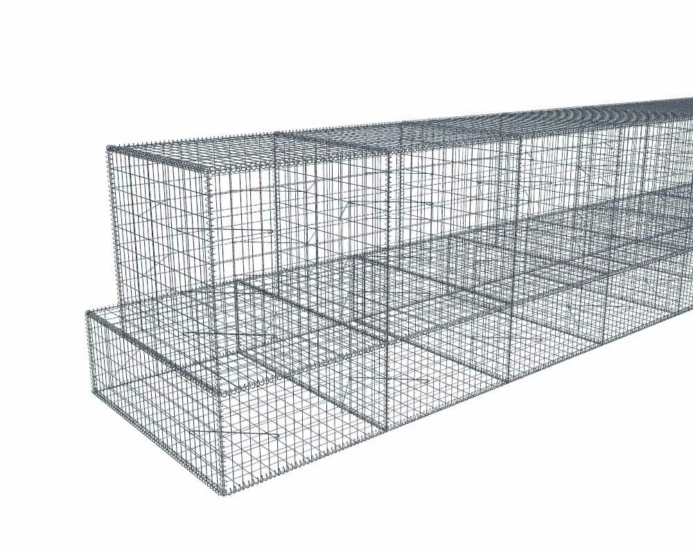 Il n'y a pas de doublement de cloisons. Seulement une cloison interne tous les mètres. Recoupe aisée avec une disqueuse ou une pince coupe-boulon. Ces gabions peuvent être superposés. Dans le cas de plusieurs rangs superposés, le couvercle du 1er rang servira de fond pour le 2eme rang, etc...