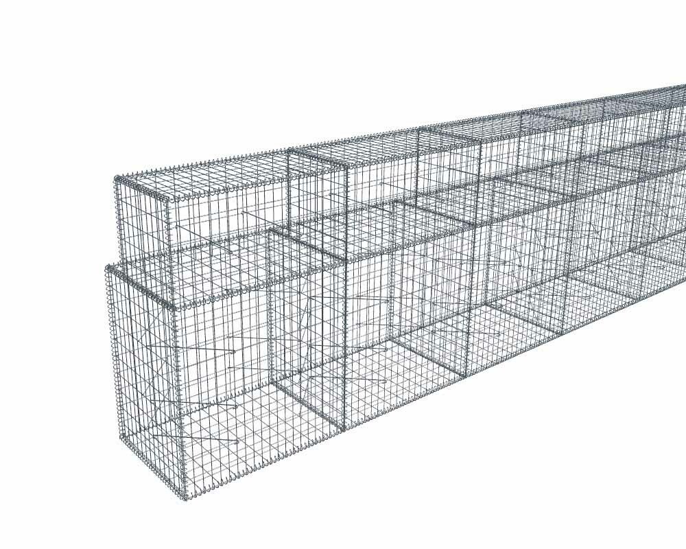 Gabions de qualité professionnelle, pour soutènement de plat sans surcharge. Hauteur 150 cm, longueur 16 m