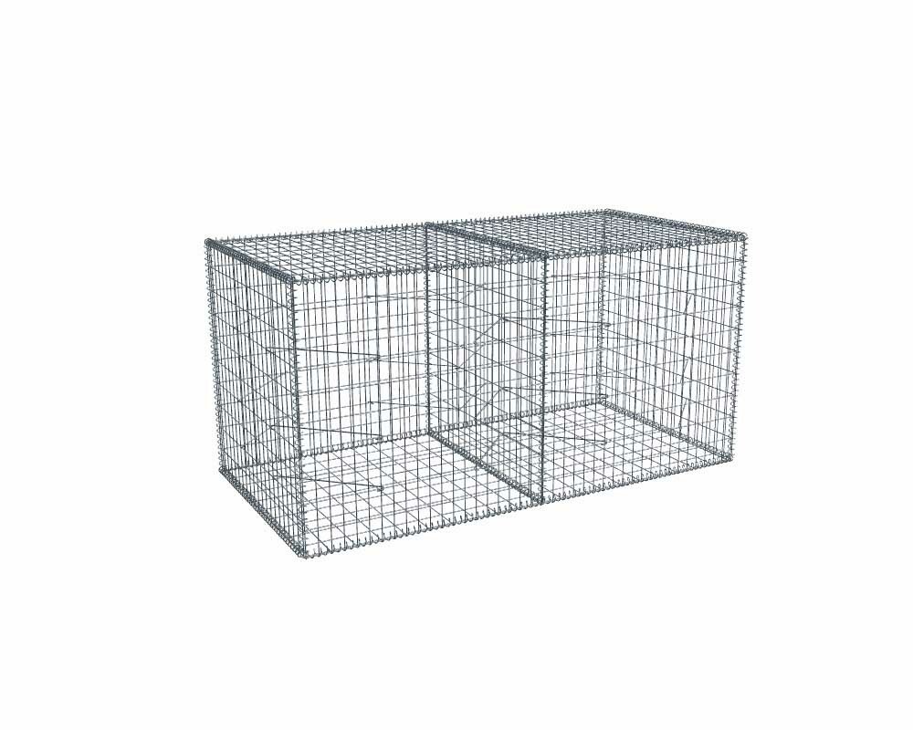 Il n'y a pas de doublement de cloisons. Seulement une cloison interne tous les mètres. Recoupe aisée avec une disqueuse ou une pince coupe-boulon. Ces gabions peuvent être superposés. Dans le cas de plusieurs rangs superposés, le couvercle du 1er rang servira de fond pour le 2eme rang, etc...