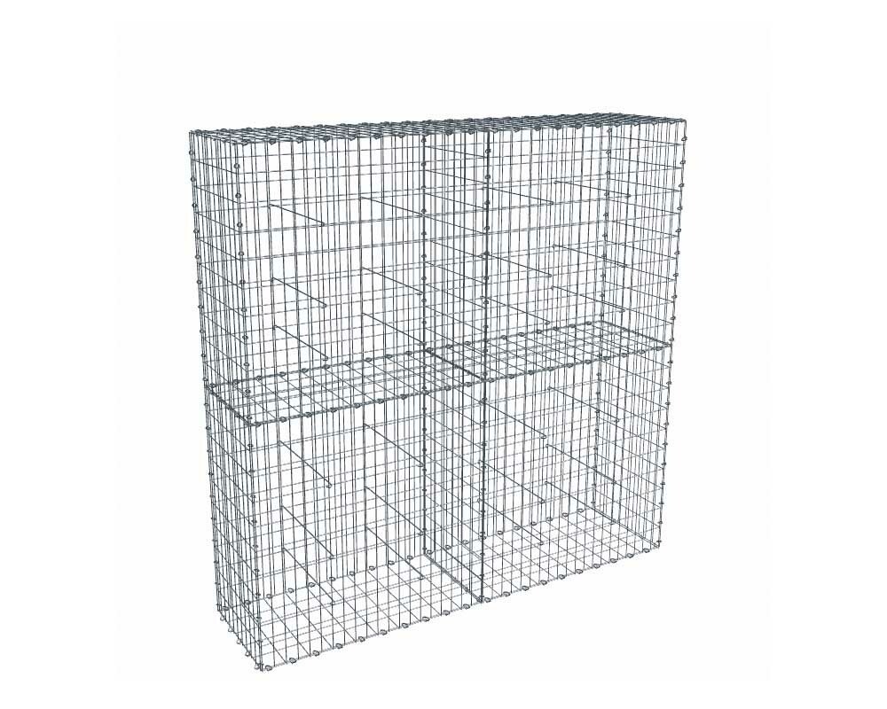 Il n'y a pas de doublement de cloisons. Seulement une cloison interne tous les mètres. Recoupe aisée avec une disqueuse ou une pince coupe-boulon. Ces gabions peuvent être superposés. Dans le cas de plusieurs rangs superposés, le couvercle du 1er rang servira de fond pour le 2eme rang, etc...