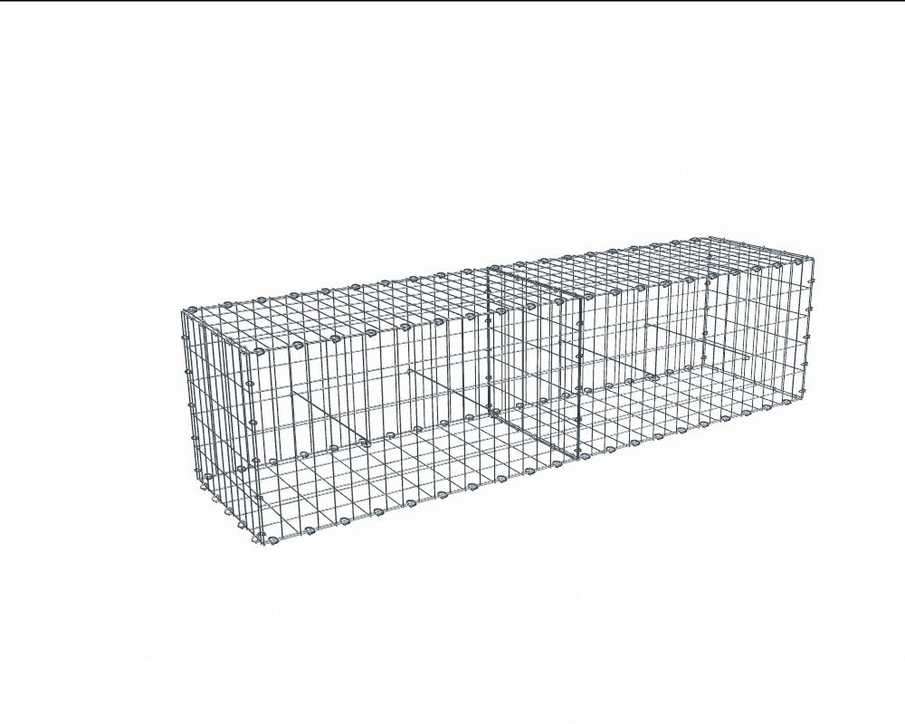 Il n'y a pas de doublement de cloisons. Seulement une cloison interne tous les mètres. Recoupe aisée avec une disqueuse ou une pince coupe-boulon. Ces gabions peuvent être superposés. Dans le cas de plusieurs rangs superposés, le couvercle du 1er rang servira de fond pour le 2eme rang, etc...