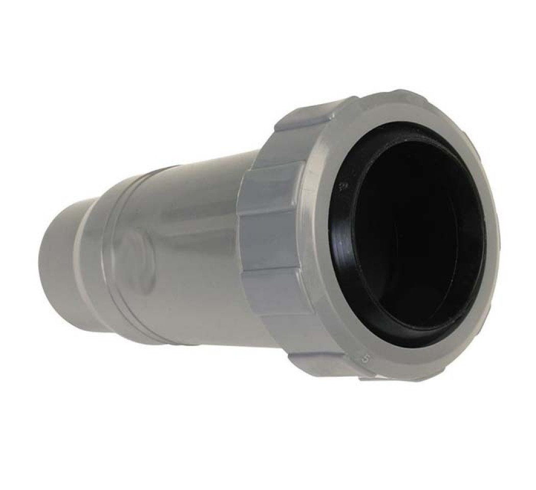 Manchon de dilatation à joint simple lèvre. La dilatation du PVC est d'environ 0.7mm/m à 10° d'écart de température, ce qui nécessite la pose d'un manchon de dilatation permettant d'absorber l'allongement et le retrait du tube.