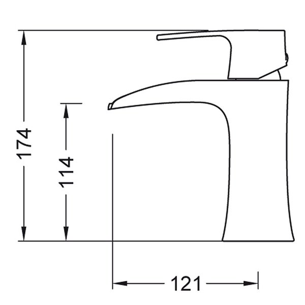 Mitigeur KING sans tirette de vidage, bec cascade, hauteur 174 mm