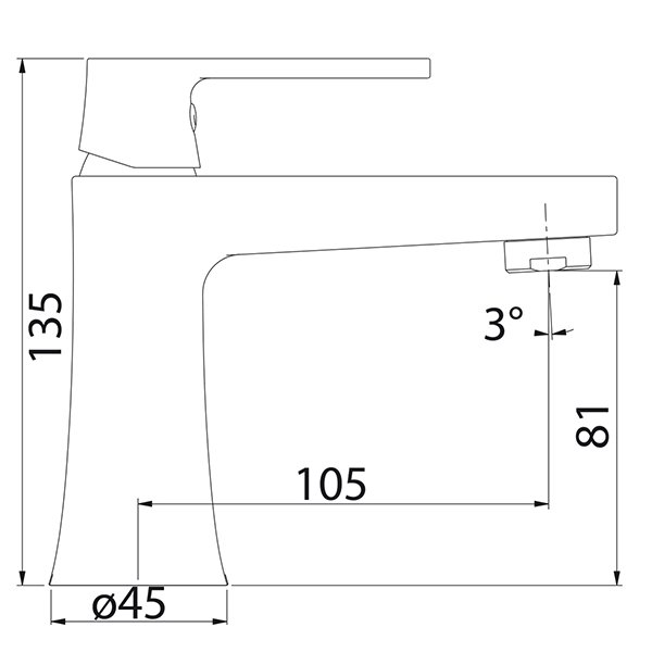 Mitigeur à bec droit. Vidage à tirette inclus, ne pas installer le vidage si la vasque n’a pas de trop-plein.