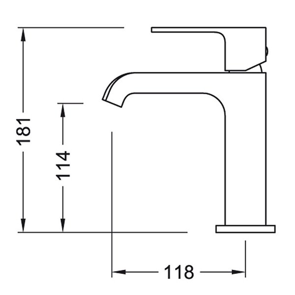 Mitigeur SLIM sans tirette de vidage, bec incliné, hauteur 181 mm