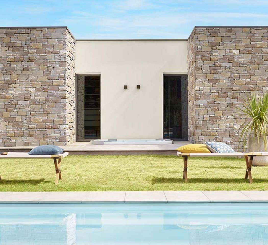 Intense et massif qualifient ce nouveau parement à l'aspect pierre sèche. Imposant par son relief et sa diversité de formes rectangulaires, le parement OLYMPE habille les façades avec force et authenticité, inscrivant avec naturel l'habitat dans son environnement.