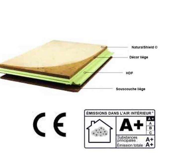 Décor liège 2,5 mm HDF 6 mm sous-couche liège 1,1 mm