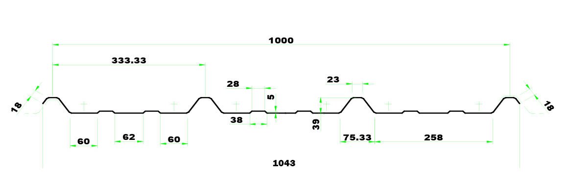 Plaque nervurée polycarbonate, profil 333/39, 7000 mm x 1043 mm