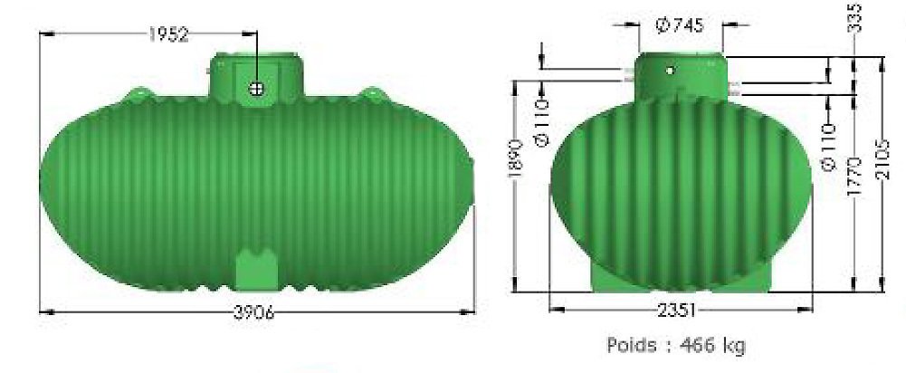 Cuve de récupération d'eau de pluie 10 000 litres.