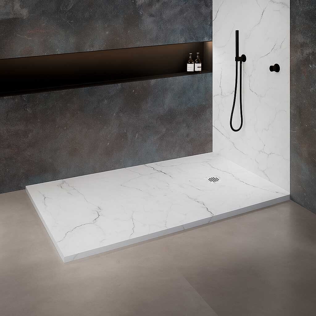 Ces receveurs de douches allient modernité, et esthétique. Ce modèle en résine imitation marbre épouse la tendance des salles de bain contemporaines et apporte de la discrétion et de la modernité.