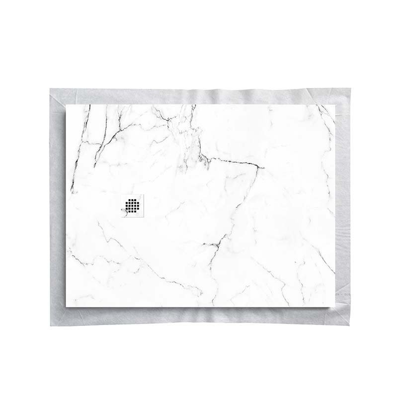 Receveur résine 180 x 80 cm imitation marbre blanc - grille carrée excentrée